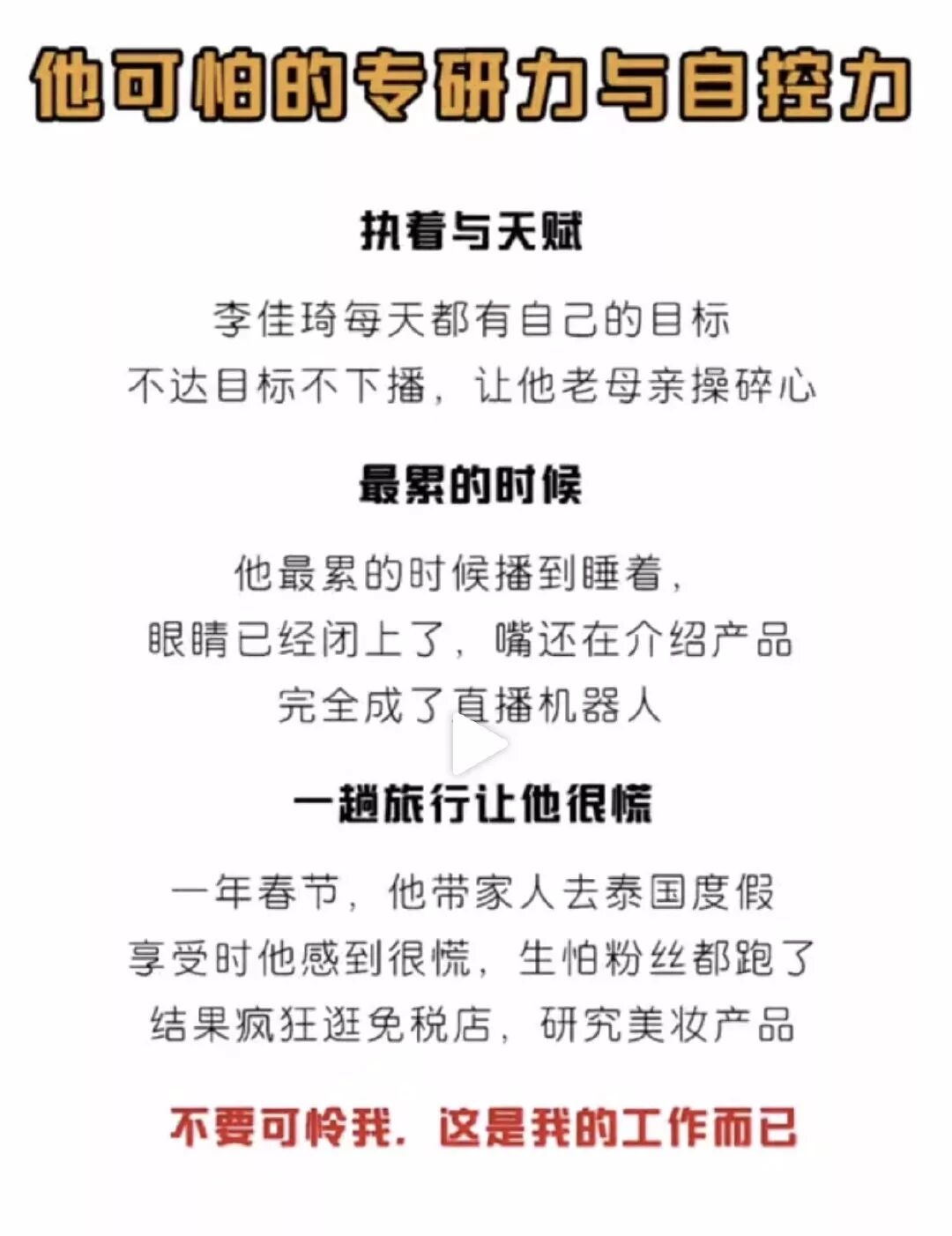 李佳琦,这个一夜暴富的新晋网红,不过是一个不断拼命,追求极致,尽量真诚,但又害怕失去一切所以更加努力去拼的年轻人。