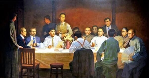1915年9月15日,陈独秀先生在上海创办《青年杂志》,一年后杂志更名为《新青年》。陈独秀在《新青年》第六卷中,第一次擎起了民主(德先生)和科学(赛先生)两面大旗,向传统的封建思想、道德、文化宣战!在沉闷的中国大地,“一枝独秀”的《新青年》,犹如黑暗中闪出的一道曙光,于无声处的一声惊雷,惊醒了沉睡着的中国人民。1916年7月,从日本归国的李大钊先生出任《晨钟报》编辑部主任,次年就任北京大学图书馆主任,同时参与《新青年》的编辑工作。李大钊是中国最早的马克思主义传播者。1917年,俄国十月革命一声炮响,给中国送来了马克思列宁主义。李大钊先生备受鼓舞,连续发表《法俄革命之比较观》、《庶民的胜利》、《布尔什维主义的胜利》、《新纪元》等文章和演讲,他预言:“人道的钟声敲响了,自由的曙光出现了。试看将来的环球,必是赤旗的世界!”就在新文化运动如火如荼之际,第一次世界大战战胜国在法国巴黎召开和平会议,作为战胜国之一,中国代表也参加了这次会议。为此,北洋政府还在故宫太和殿举行了盛大的阅兵式。喜悦之情未尽,巴黎和会却传来消息:中国代表在会上提出取消外国在中国的一切特权,废除二十一条等合理要求遭到拒绝,巴黎和会还决定将战败国德国在山东的特权全部转给日本。北洋军阀政府屈服于西方列强的压力,准备在和约上签字。1919年5月4日,“五四运动”爆发!这是一场以青年学生为主,广大群众、市民、工商人士等阶层共同参与的,通过示威游行、请愿、罢工、暴力对抗政府等多种形式进行的爱国运动,是中国人民彻底的反对帝国主义、封建主义的爱国运动。至6月7日,北洋军阀政府被迫释放被捕学生,并于6月10日罢免了卖国官僚曹汝霖、章宗祥、陆宗舆的职务。6月28日,中国代表拒绝在《巴黎和约》上签字。轰轰烈烈的五四运动让越来越多的青年觉醒,并走上了马克思主义之路。1919年6月11日晚,陈独秀在北京前门外“新世界”游艺场散发《北京市民宣言》传单时被捕入狱。一时间,各地抗议电报纷至沓来,矛头直指北洋军阀政府。陈独秀在被关押了98天之后,由安徽同乡作保,走出了监狱。1920年2月中旬的一天,一辆骡车缓缓驶出北京城,李大钊化装成赶车的车夫,秘密护送陈独秀出京南下。数天里,在这辆不断摇晃的骡车上,李大钊、陈独秀热烈讨论着在中国建立共产党组织的问题,相约建党的历史佳话由此流传开来。1920年8月,上海共产党早期组织正式成立,取名为中国共产党,陈独秀为书记。这年冬天,在毛泽东、何叔衡等人的积极活动下,长沙共产党早期组织在新民学会的先进知识分子中秘密诞生了。很快,武汉、济南、广州,留日华人也都行动起来,纷纷成立党的早期组织。1921年春天,张申府、赵世炎、陈公培、周恩来等人建立了旅法共产党组织。