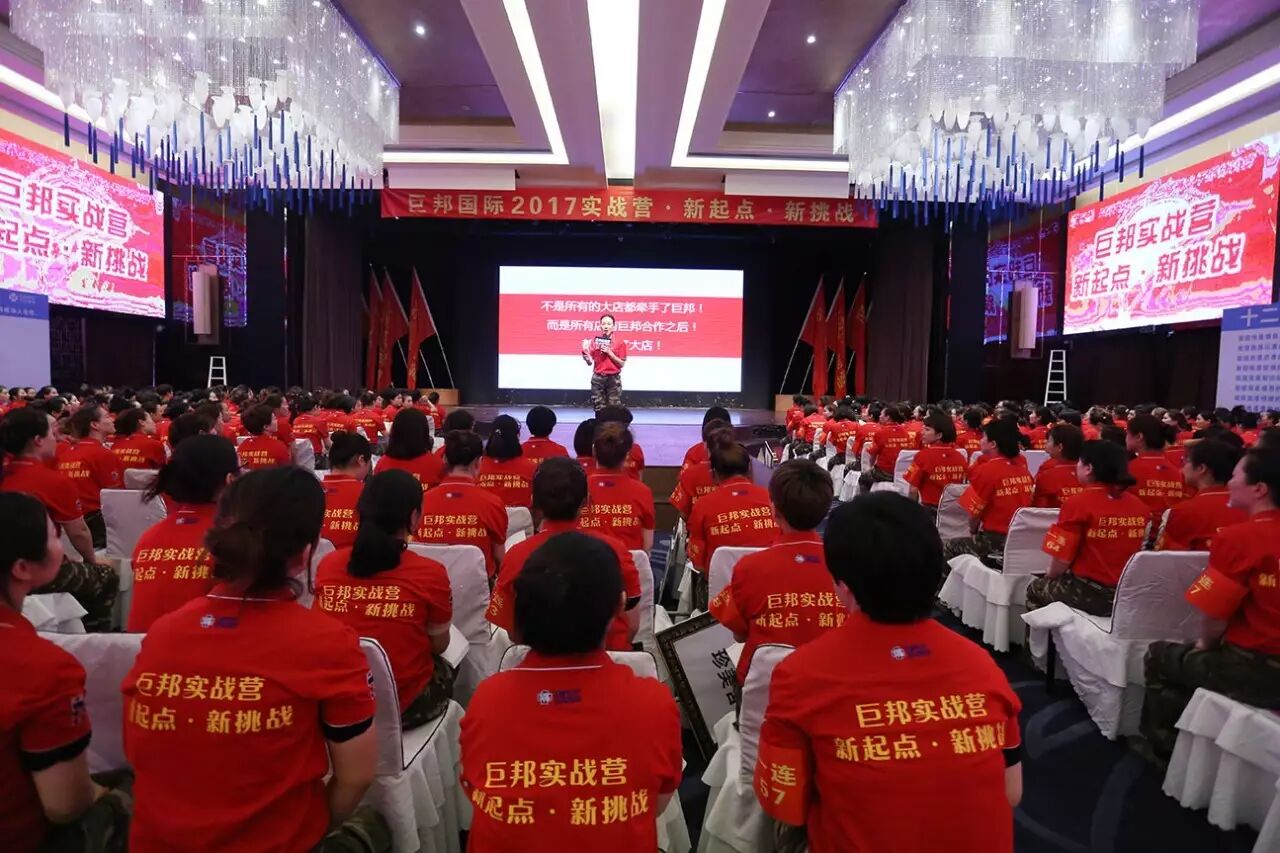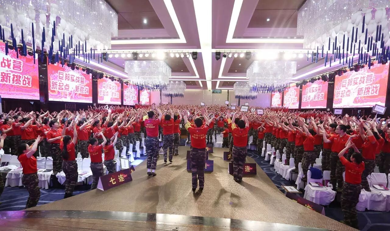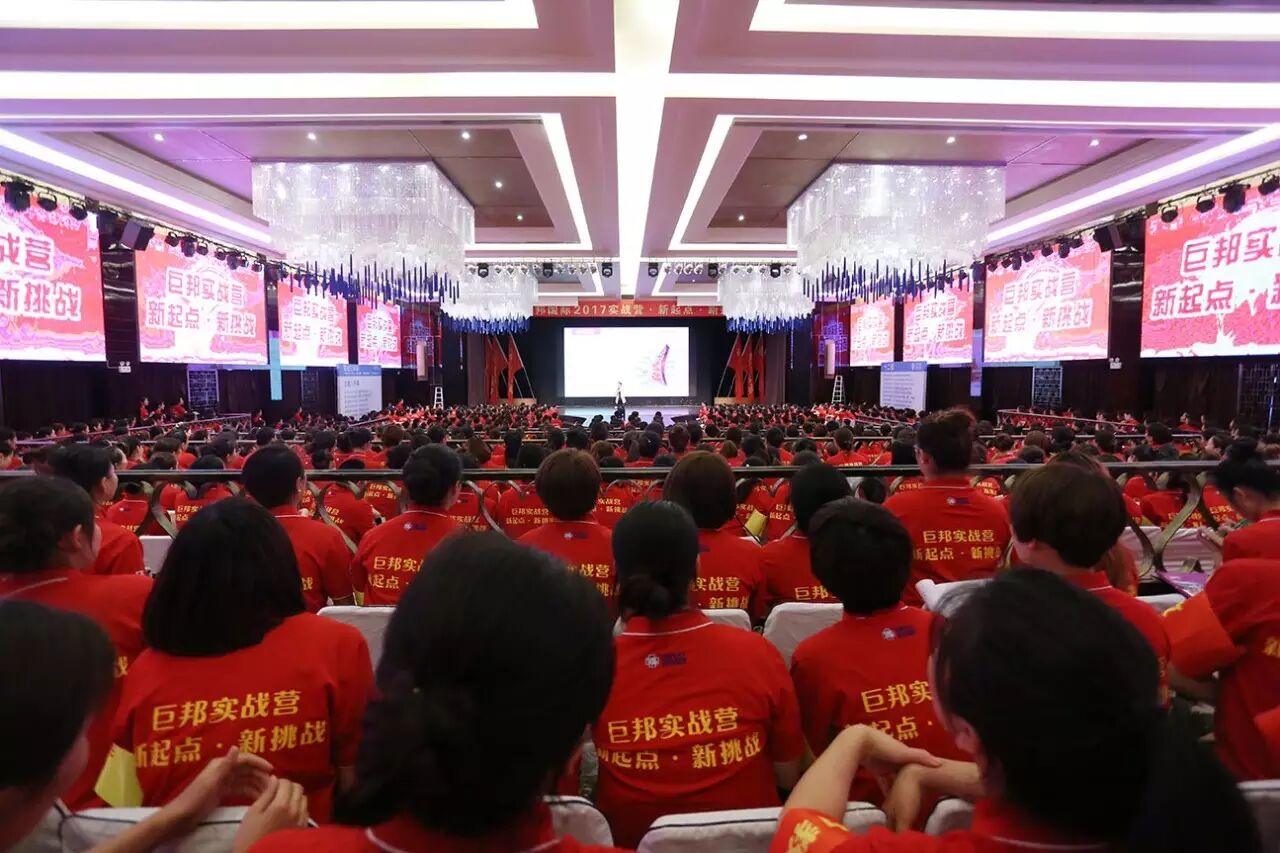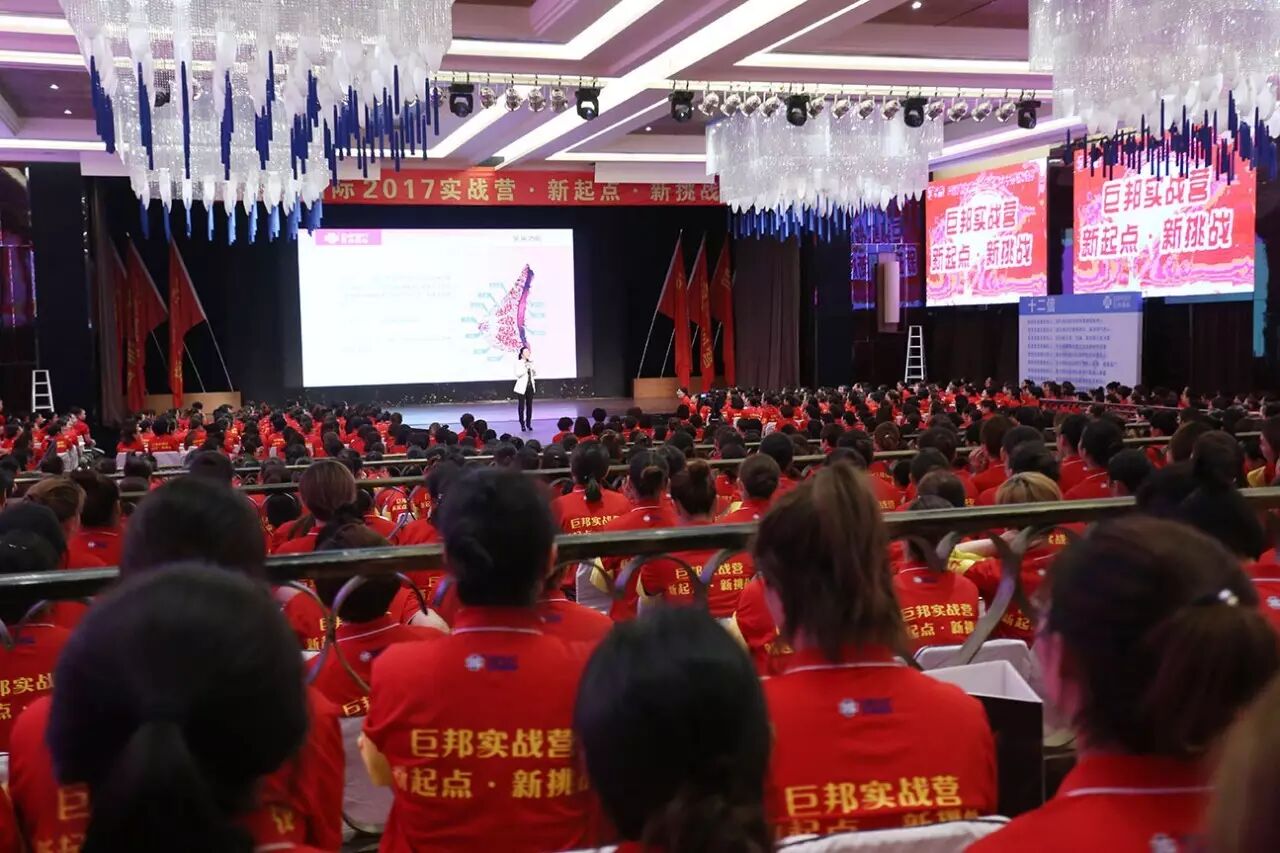 这是第三十二届巨邦核心干部实战营。巨邦国际美女总裁范晓兰、李少妃、李彩芸、黄阳娇挂帅主阵,美女主持罗珊霞、熊欣二位老师实力担纲!