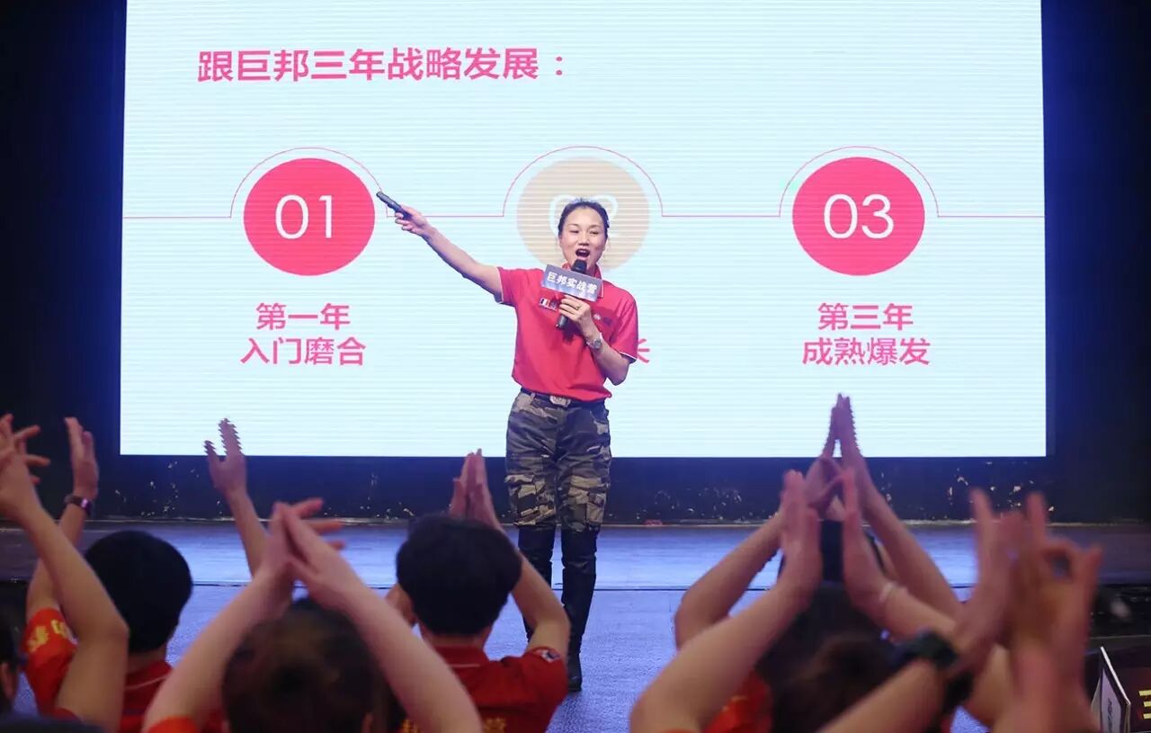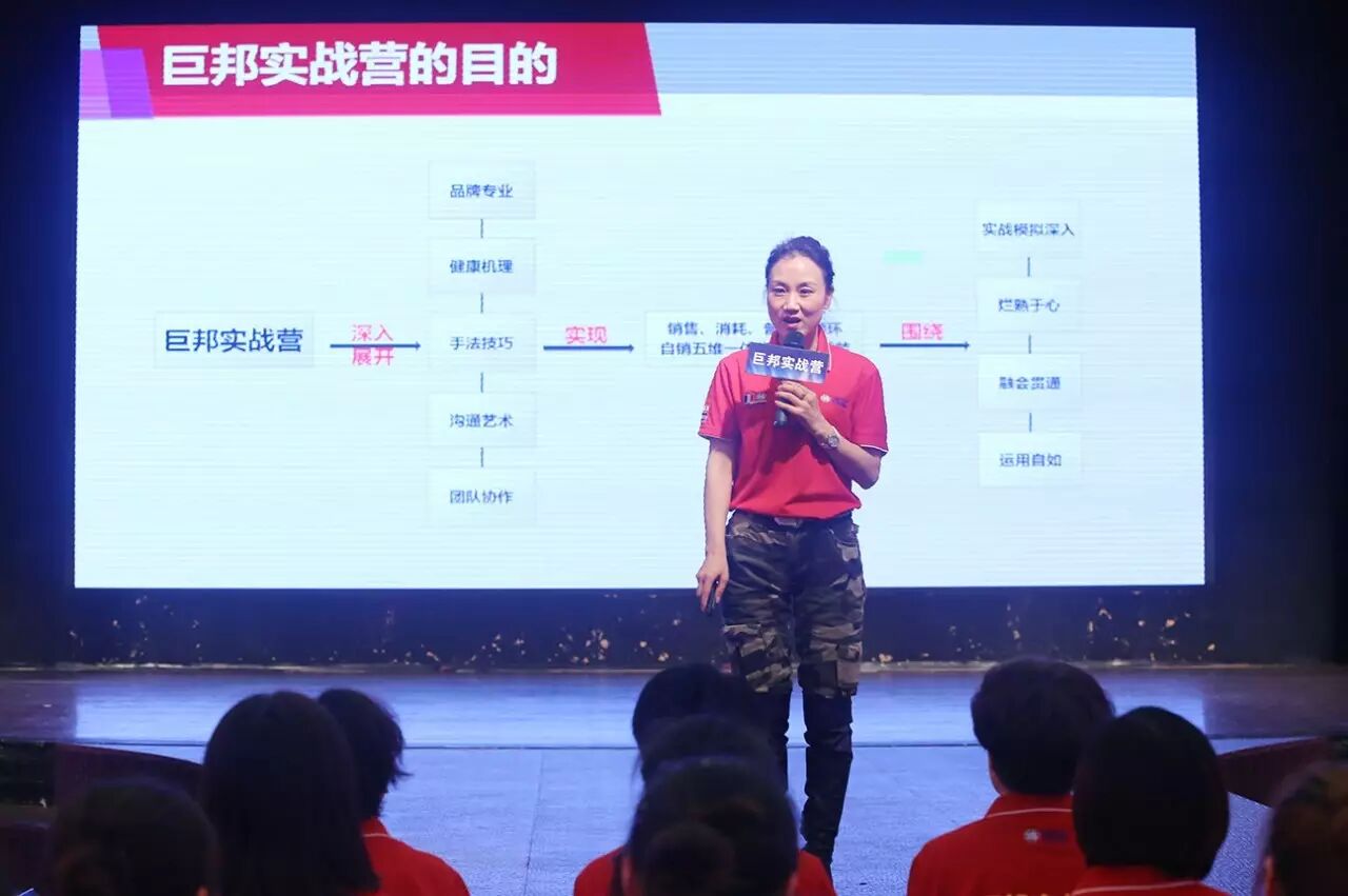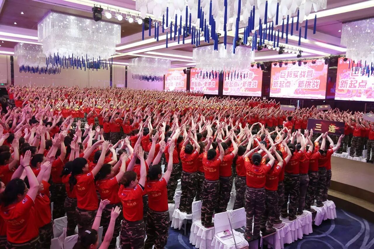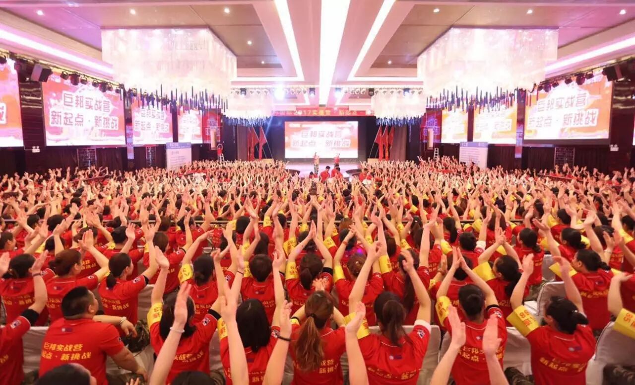 这是第三十二届巨邦核心干部实战营。巨邦国际美女总裁范晓兰、李少妃、李彩芸、黄阳娇挂帅主阵,美女主持罗珊霞、熊欣二位老师实力担纲!