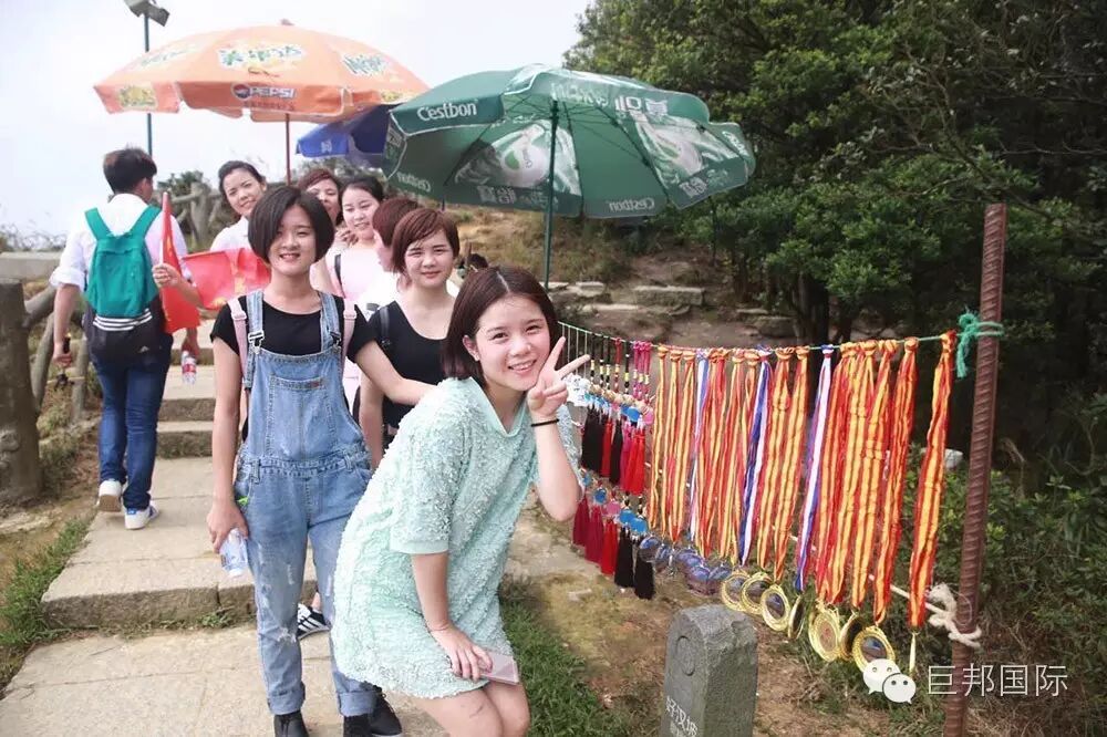 一百多号小师妹,作为一个爬山的团队,那无疑是相当的庞大了!长龙摆尾,浩浩荡荡,集结于梧桐山山门前,条幅一拉: