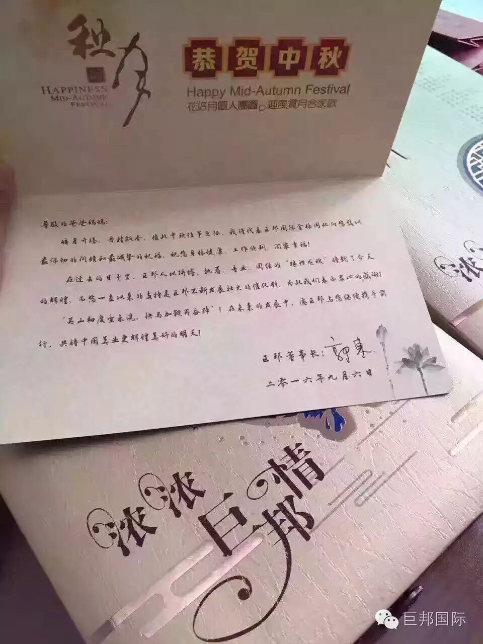 明月几时有,把酒问青天。北宋词人苏东坡脍炙人口的一句词,千年下来口口相传,如今读起来依然让人倍感诗情画意,情义万丈!眼下青天已不必问,中秋已在眼前,巨邦作为一个快乐大家族,向来看重恩义亲情,···...