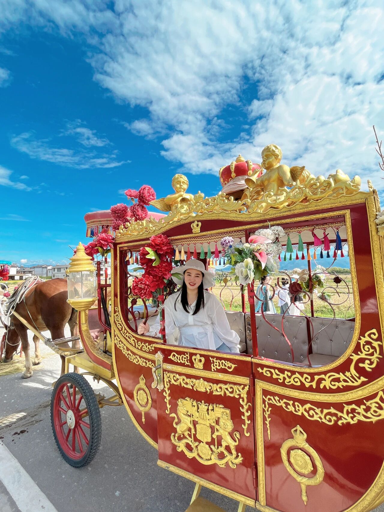 蓝天白云,绿野青郊,我们坐着漂亮的小马车,姐妹同行,且歌且乐。