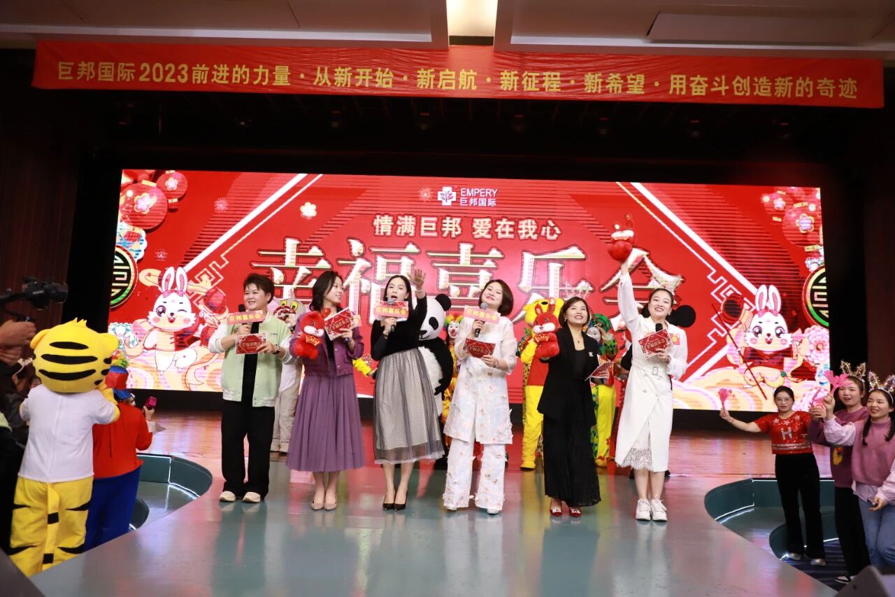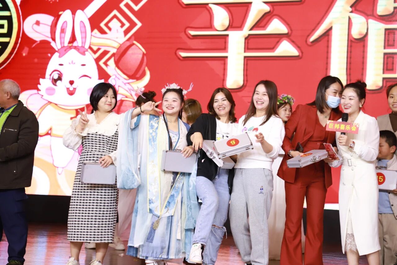 总经理深情献唱:我希望五十年以后,你还能在我左右,那时都已白了头,还想听你叫我丫头,轻轻牵着你的手,静静靠在你胸口……一年的奋斗,离不开领导们的引领与支持,感恩巨邦国际张红副董事长、范晓兰总裁、李少妃总裁、李彩芸总裁、黄阳娇总裁、黄艳华总裁、宋佳总裁、罗丹丹总裁荣获“风雨同舟奖”!总裁说:“像我们这么有个性的人,为什么留在巨邦就不走了?我们要是在小公司工作,就是一根刺,早就被拔了;但是巨邦,董事长容得下我们。‘社会教会了我冷漠,巨邦教会了我相信’,这是我刚加入巨邦的时候说的一句话,感恩巨邦,花会沿路盛开……”今年是特别好的一年,看到的是希望,是财富,是激情,用大舅哥的话,今年比去年好,一年更比一年好!元宵锣鼓闹盈盈,明月花灯满鹏城,人山人海春潮涌,欢乐雷动巨邦心。今日元宵,也迎来了巨邦国际一年一度欢乐团圆的员工幸福喜乐会。财神爷曾姐祝词:“新的一年,祝大家身体健康,万事如意!巨邦的‘喜乐会’也是‘父母节’,这次姐妹们的爸爸妈妈不能来到基地跟我们一起团圆喜乐,但是我相信,今年年底我们一定可以,延续过去的传统,共度欢乐时光!”
