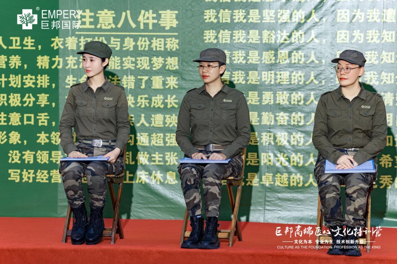 她们说:“没来巨邦前,挺自我感觉良好的,觉得自己能吃苦能坚持,结果被现实狠狠打脸了!” 她们说:“感恩公司,感恩我的老板,给我这次学习的机会,更感谢巨邦,感谢教官和总裁们的付出……” 她们说:“这次军训将在我的人生中每一个想退缩的时刻,提醒我,不要做懦弱的人!” 她们说:“巨邦是我从事美业以来,见过最牛逼的企业!每次来都深深震撼到我,一群女人,是女儿、是妻子、是妈妈、是儿媳妇,各种身份没有限制她们,还有能力成为卓越的美业人,榜样的力量!”