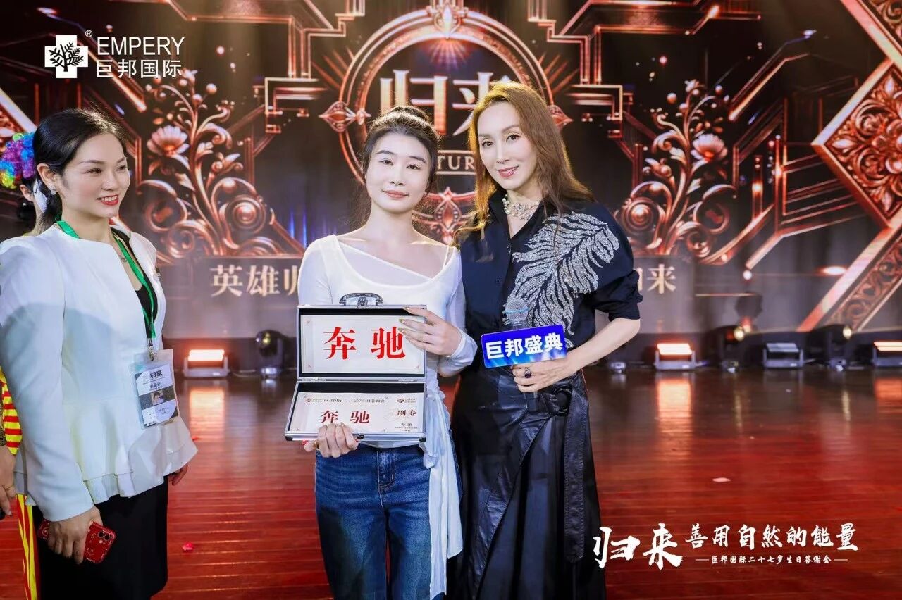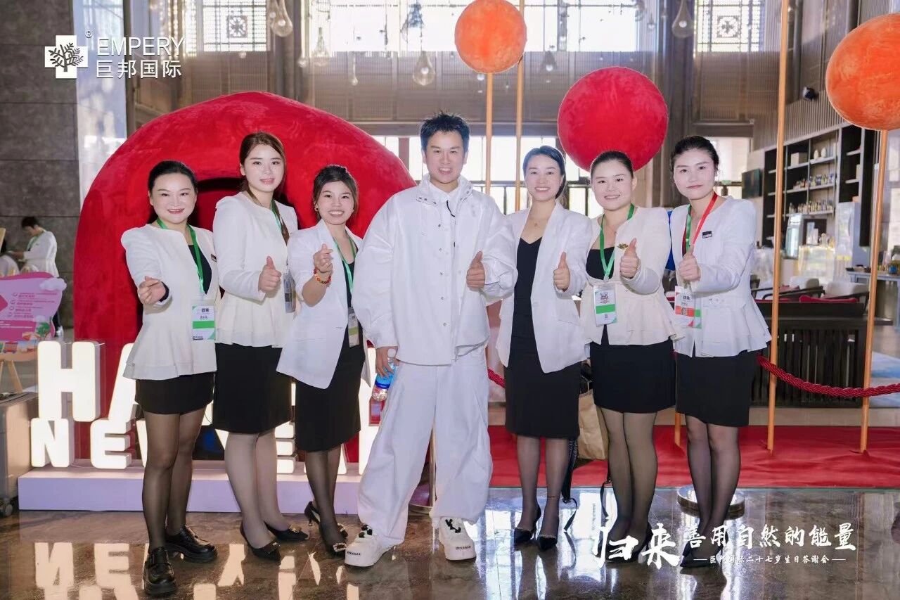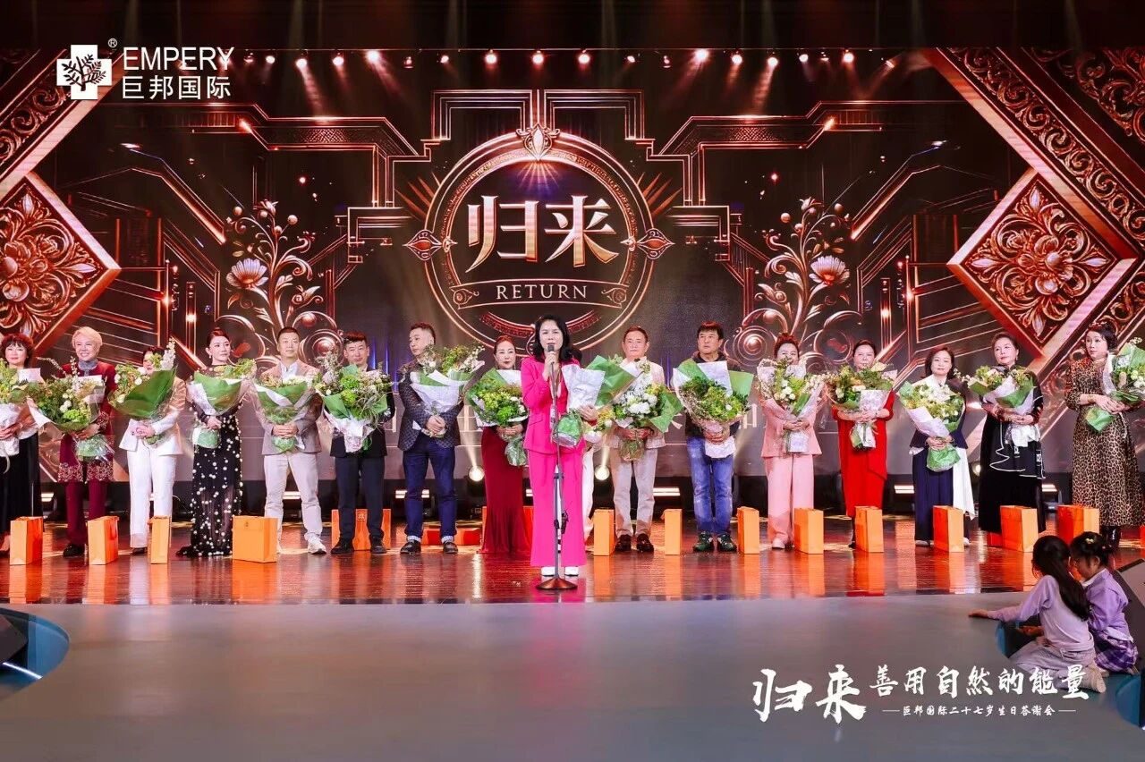 主持人四哥罗小林开场:“2011年,巨邦基地落成,12岁巨邦年会就在这里举行!十五年过去了,今天来到巨邦基地生态园,我们走了整整三个小时,已经没有语言来表白此刻、此情、此景。归来,十五个商标、十五面旗帜、十五个产业链在一步步实现,巨邦在制定标准,巨邦在定义未来,展现全新的美业格局!”
