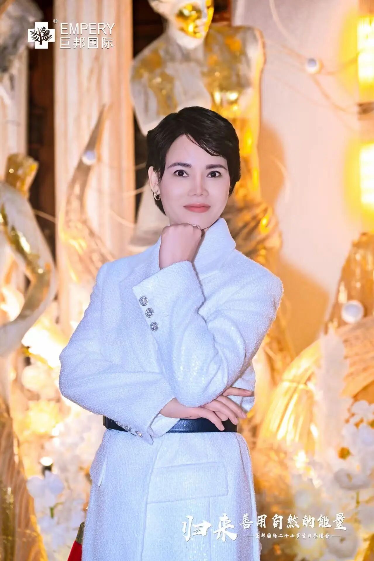 “郭东大哥被评为美业终身成就奖,实至名归!行业需要引领,巨邦今天的盛典犹如美业奥斯卡,我参加过德国的盛典,明年我也要请国外的朋友来看看,中国美业多伟大!”